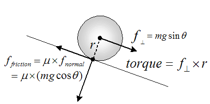 normal component of the weight of the ball. Without friction the ball