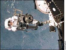 astronaut to position the satellite in its docking position near the bracket