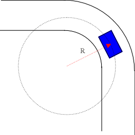 rounds a curve at a constant speed as shown below. The curve has a radius
