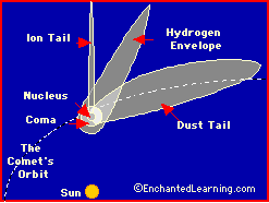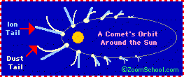 from California Science Framework... Very small objects composed mostly of rock (asteroids) or the ice from condensed gases (comets) or both also orbit the Sun. Some asteroids and all comets have highly elliptical orbits, causing them to range great distances from very close to the Sun to well beyond the orbit of Pluto.