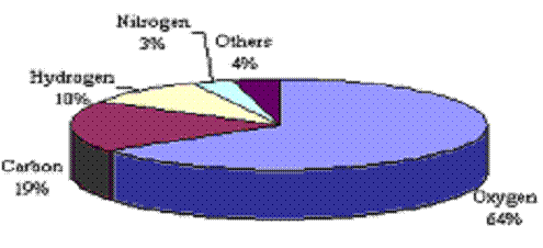 largely of carbon, hydrogen, nitrogen, oxygen, phosphorus, and sulfur. |